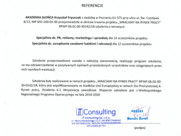 Poniżej lista i galeria referencji usług Akademii Słońca od 2010r: